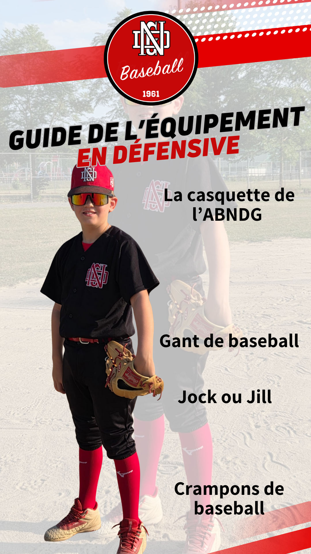 L’équipement standard de baseball comprend tous les éléments mentionnés ci-dessus.